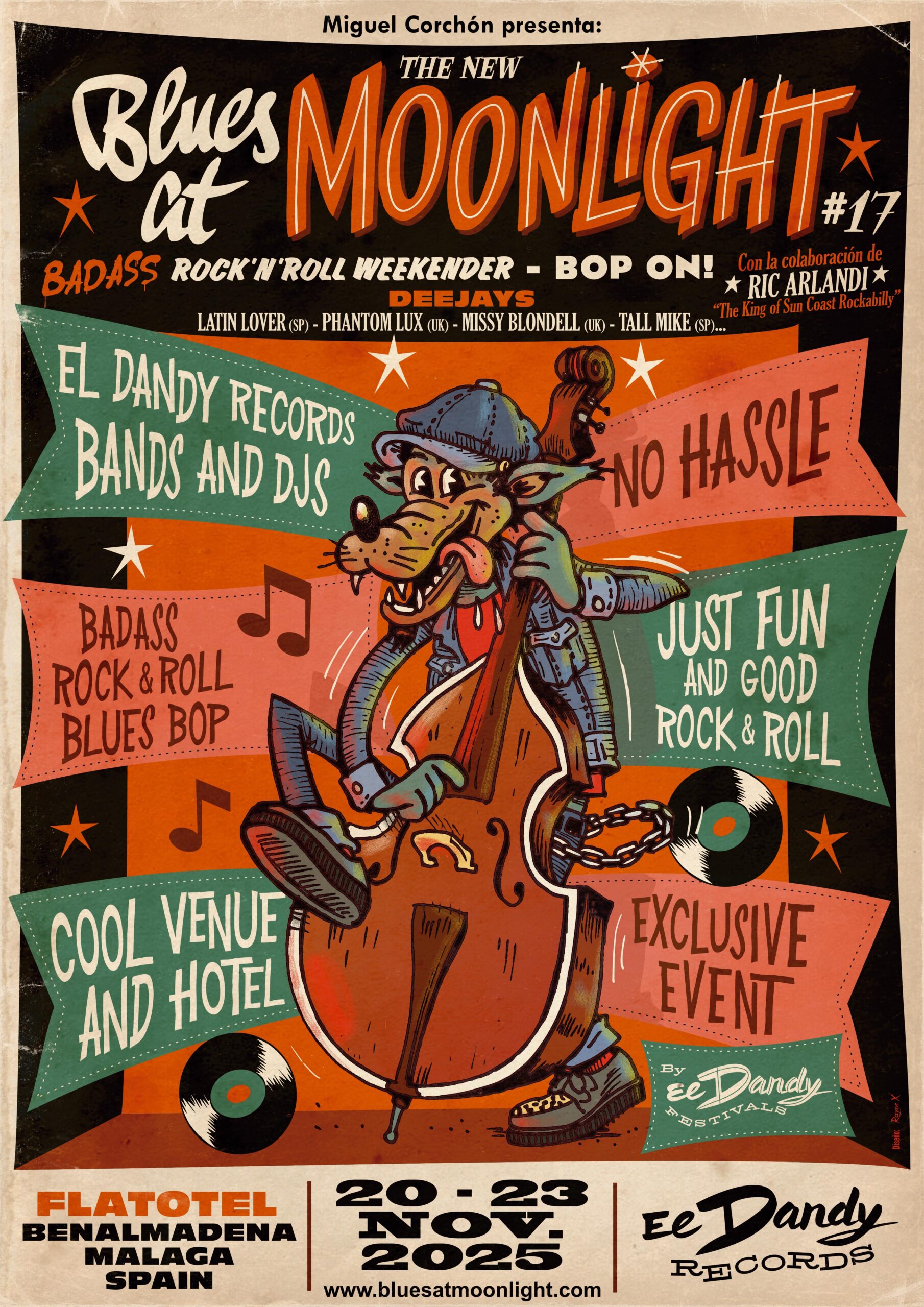 Un año más, ActivPro presenta una nueva edición con DJs internacionales de rockabilly y música de raíces americana y actuaciones de algunos de los artistas que han grabado con nuestro sello El Dandy Records: BLUES AT MOONLIGHT, con una programación realmente atrevida.
